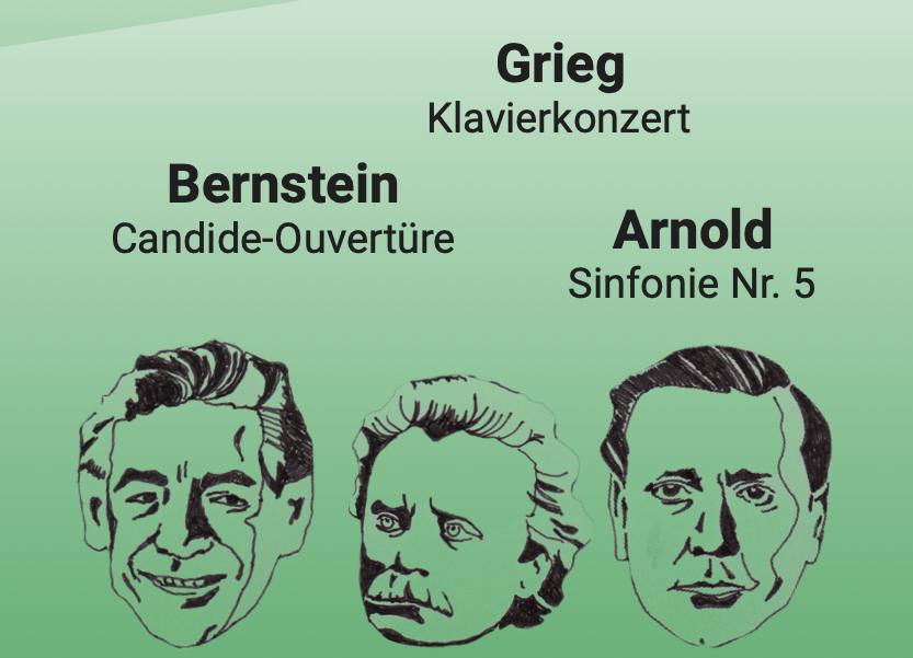 Auf dem Programm steht die Candide-Overtüre von Leonard Bernstein, das Klavierkonzert von Edvard Grieg und die 5. Sinfonie von Malcolm Arnold. Es wird also ein klassisches Programm, was jedoch viele Elemente des Jazz, der Popular- und Volksmusik enthält.