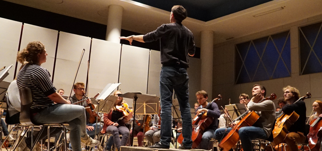 Im aktuellen Semester kehrt unser Dirigent Martin Lill nach seiner Babypause mit Charles Ives zweiter Sinfonie wieder zurück. Und Tobias Rokahr hat dieses Semester nicht nur die Funktion des Dirigenten, sondern auch des Komponisten – was für uns Orchestermusiker bedeutet, dass das von ihm komponierte Stück kontinuierlich erweitert und verändert wird, plötzlich Teile wegfallen oder neue Töne hinzukommen. Wir sind gespannt auf das Endprodukt! Das gibt es dann neben der Ives-Sinfonie und dem Chopin Klavierkonzert Nr. 1 am 21. Februar 2019 im Richard Jakoby Saal der HMTMH zu erleben.