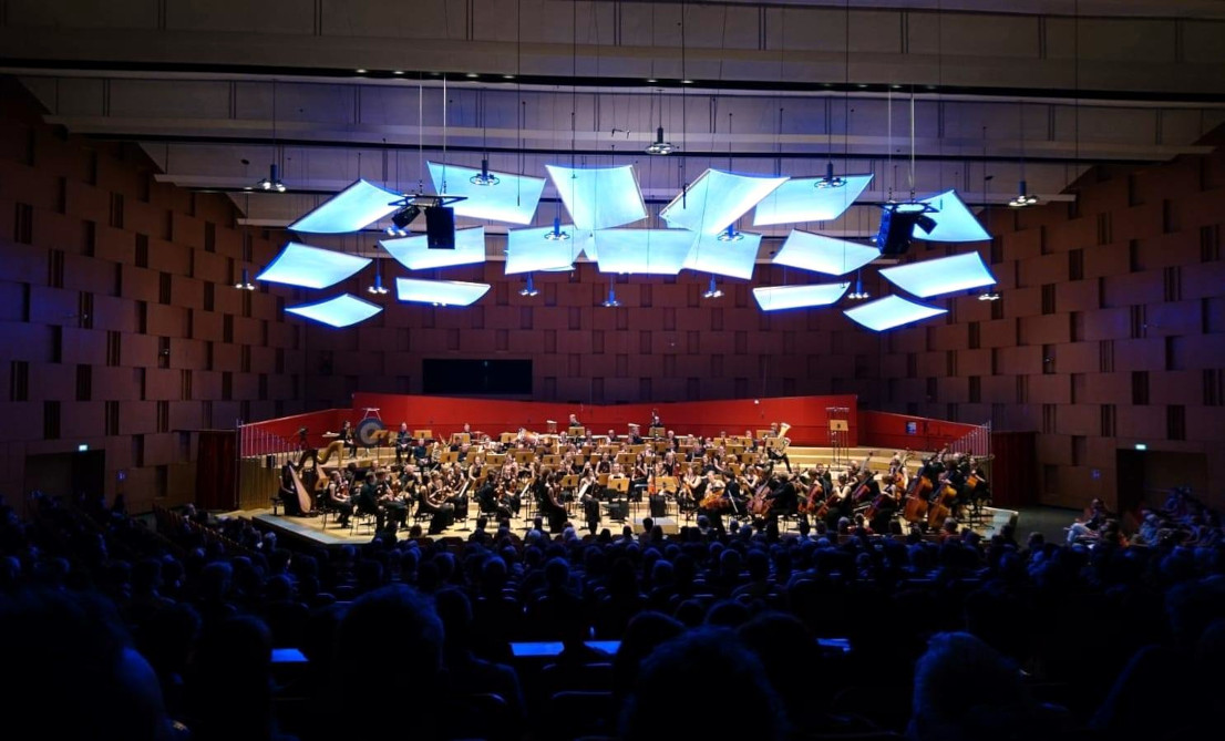 In der Aula von Sennheiser erklingt Edvard Griegs Klavierkonzert. Mit Abstand, negativen Tests und weiteren Hygieneregeln dürfen wir uns endlich wieder zum gemeinsamen Musizieren treffen! Die ersten Akkorde klappern noch ein wenig und es fehlen die gewohnten PultnachbarInnen, da jede und jeder alleine am Notenpult sitzt, doch nach einer Stunde haben sich alle wieder in den Orchesterklang eingefunden und ein lang nicht da gewesenes Gefühl stellt sich ein. Dementsprechend werden die verschiedenen Atmosphären in der Peer Gynt Suite von Grieg mit Hingabe herausgearbeitet.