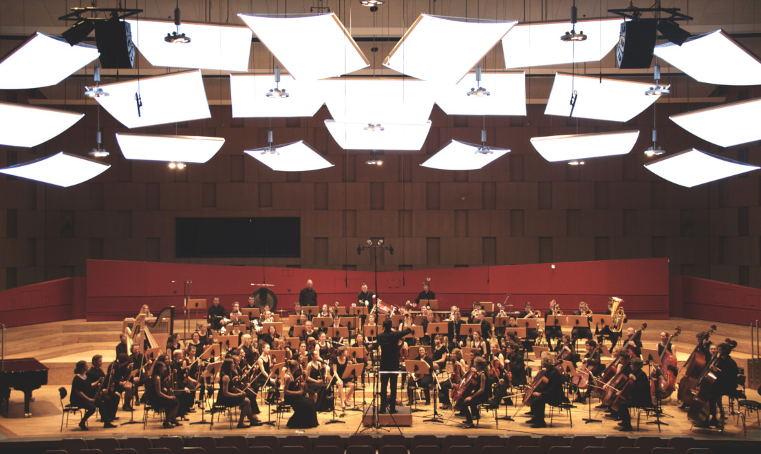 In der Aula von Sennheiser erklingt Edvard Griegs Klavierkonzert. Mit Abstand, negativen Tests und weiteren Hygieneregeln dürfen wir uns endlich wieder zum gemeinsamen Musizieren treffen! Die ersten Akkorde klappern noch ein wenig und es fehlen die gewohnten PultnachbarInnen, da jede und jeder alleine am Notenpult sitzt, doch nach einer Stunde haben sich alle wieder in den Orchesterklang eingefunden und ein lang nicht da gewesenes Gefühl stellt sich ein. Dementsprechend werden die verschiedenen Atmosphären in der Peer Gynt Suite von Grieg mit Hingabe herausgearbeitet.